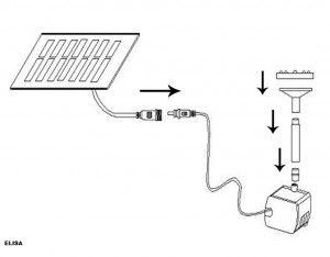 SOLAR WATER FONTEIN MET EEN LOS PANEELTJE.